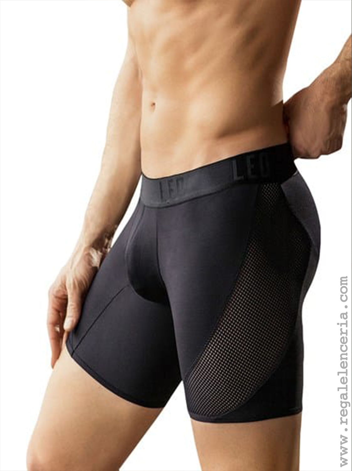Panty brasilera en tulle illuna con sesgos de tela estampada en pitón en el delantero, posterior encarterado y tulle doble en pierna.